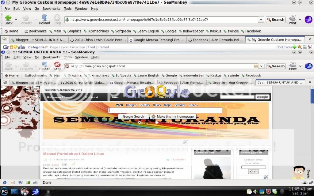 Update terkini mengenai groovle, situs ini memperbolehkan visitor untuk mengganti homepage. berikut ini screenshot dari homepage yang saya buat